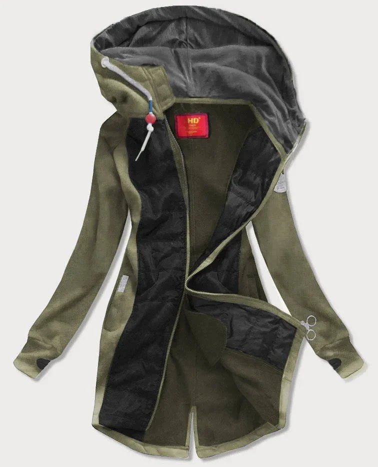 Khaki-černá dlouhá dámská mikina s kapucí (532)