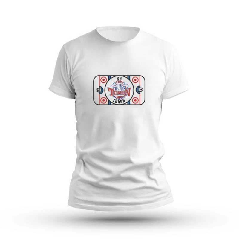 koszulka krótki rękaw KHT Toruń Ice Hockey 2 Kids Koszulka krótki rękaw KHT Toruń Ice Hockey 2 Kids to stylowa propozycja dla bnajmłodszych fanów Toruńskiej drużyny, łącząca nowoczesny design z hokejową pasją. Główne cechy: Unikalny design: Duża grafika lodowiska z herbem KHT Toruń w centralnym punkcie i napisem „Toruń” wpisanym w linie pola gry. Idealna na trybuny i na co dzień: Nowoczesny krój i biały kolor sprawiają, że koszulka świetnie sprawdzi się zarówno podczas meczu, jak i w codziennych stylizacjach. Wysoka jakość materiału: 100% bawełna (w kolorze 12 - 85% bawełna, 15% wiskoza). Gramatura: Idealna waga materiału - 200g/m², zapewniająca równowagę między lekkością a trwałością. Koszulka KHT Toruń Ice Hockey 2 to obowiązkowy element garderoby dla najmłodszych kibiców KHT Toruń!