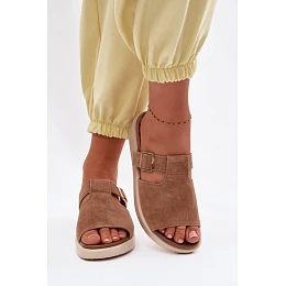 Dámské sandály vyrobené z přírodního semiše jsou stylovým návrhem pro teplé dny. Měkký, vysoce kvalitní materiál jim dodává elegantní vzhled a zároveň poskytuje pohodlí při každodenním nošení. Model je umístěn na platformě, která jemně zvedá postavu a zaručuje stabilitu a pohodlí chůze. Pásek s zlatou přezkou plní jak praktickou, tak dekorativní funkci, umožňuje lepší přizpůsobení a dodává celku moderního charakteru. Je to ideální volba pro ženy, které ocení kombinaci pohodlí, kvality a moderního stylu.