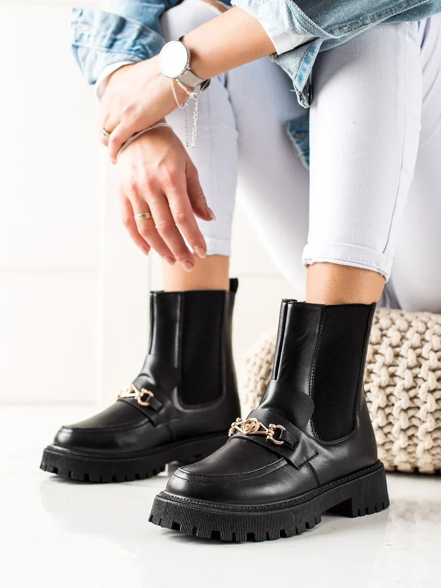 Klasické dámské černé kotníčkové boty na plochém podpatku