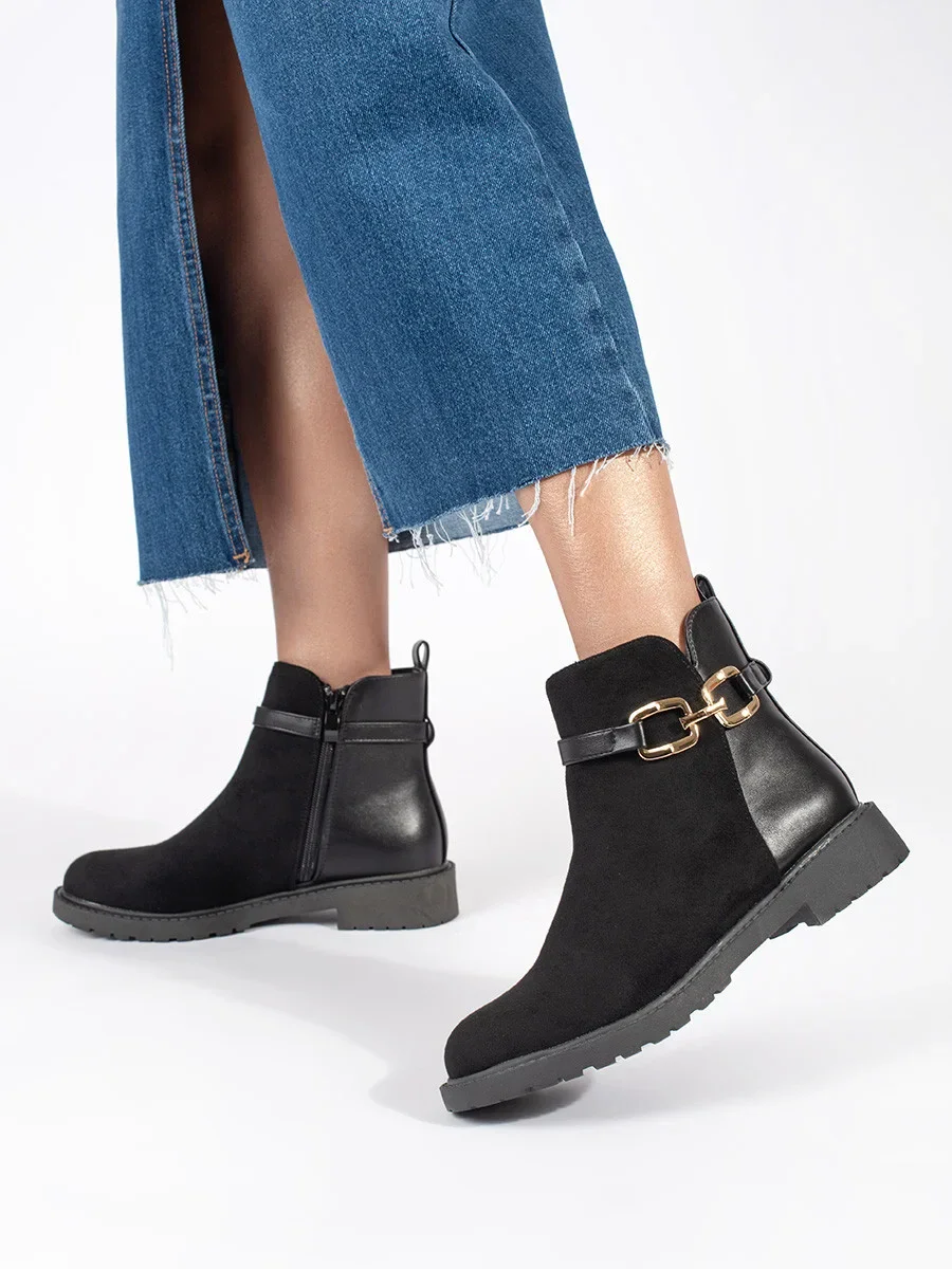 Klasické dámské kotníčkové boty černé na širokém podpatku