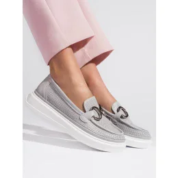 Klasické dámské mokasíny šedo-stříbrné bez podpatku