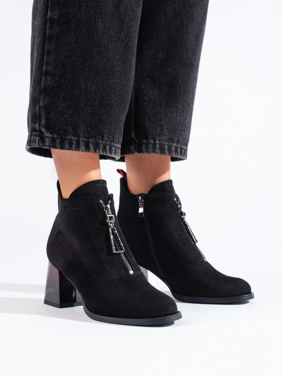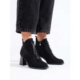 Klasické kotníčkové boty dámské černé na širokém podpatku