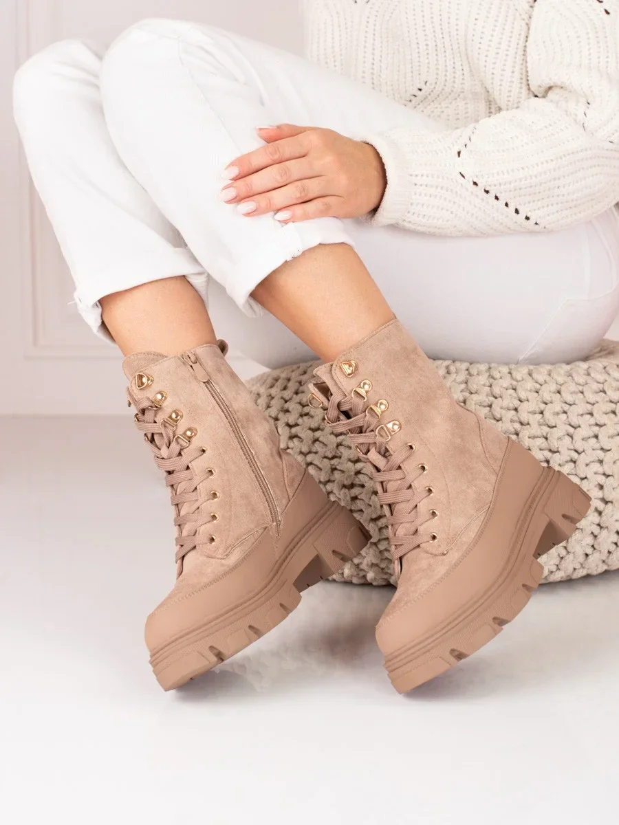 Klasické kotníčkové boty hnědé dámské na plochém podpatku