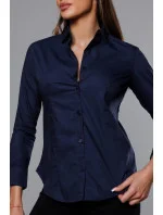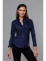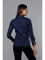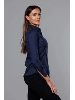 Halenka je vyrobená z lehce pružného materiálu, je vypasovaná a zapíná se knoflíky. Model má délku k bokům.