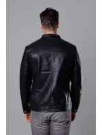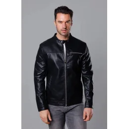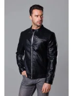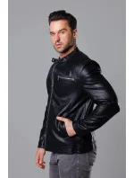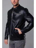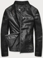 Klasická černá pánská bunda z eko kůže (11Z8025)