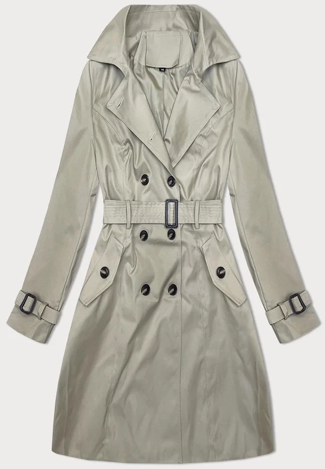 Tmavě béžový klasický kabát trenčkot v délce do poloviny stehen (2696#-5)