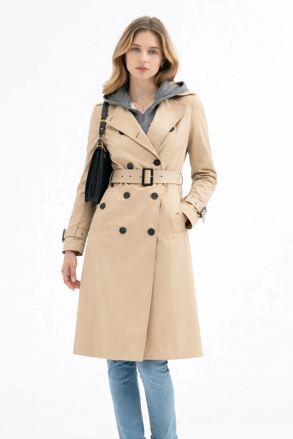 Klasyczny trencz z odpinanym kapturem Goodlookin ciemny beżowy (T2-2252#-5)