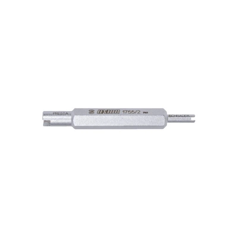 Klíč pro ventily Schrader a Presta, přesně opracovaný z nástrojové oceli.
