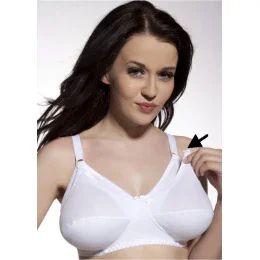 Podprsenka pro kojící matky. Má snadno odepínací košíčky, které jsou pro větší pohodlí zevnitř podšité bavlnou. 100% bavlna.
