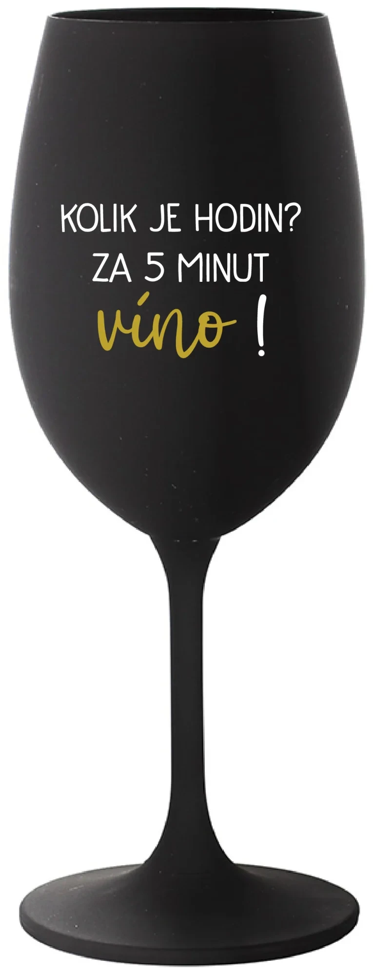 KOLIK JE HODIN? ZA 5 MINUT VÍNO! - černá sklenice na víno 350 ml