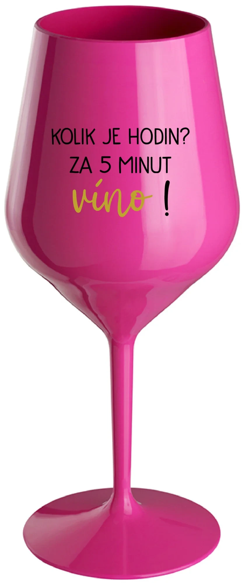 KOLIK JE HODIN? ZA 5 MINUT VÍNO! - růžová nerozbitná sklenice na víno 470 ml