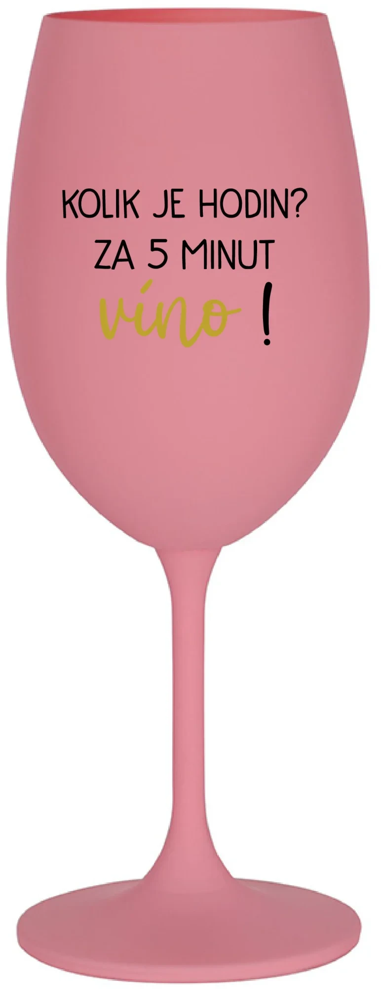 KOLIK JE HODIN? ZA 5 MINUT VÍNO! - růžová sklenice na víno 350 ml