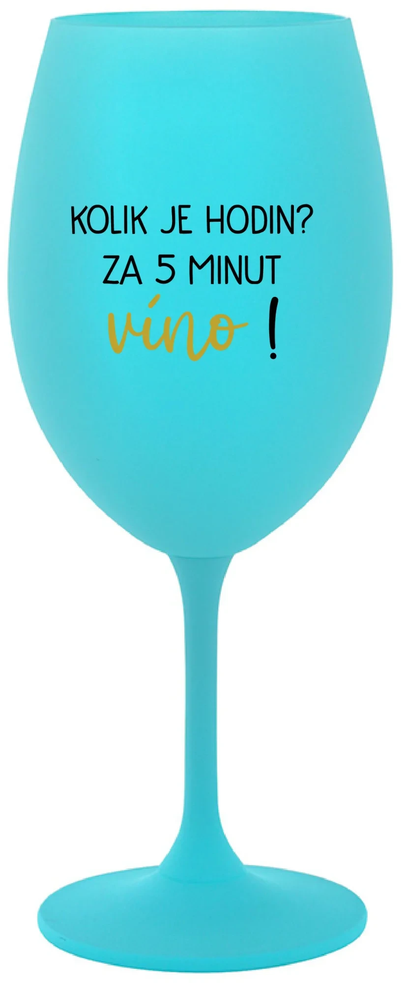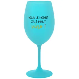 KOLIK JE HODIN? ZA 5 MINUT VÍNO! - tyrkysová sklenice na víno 350 ml