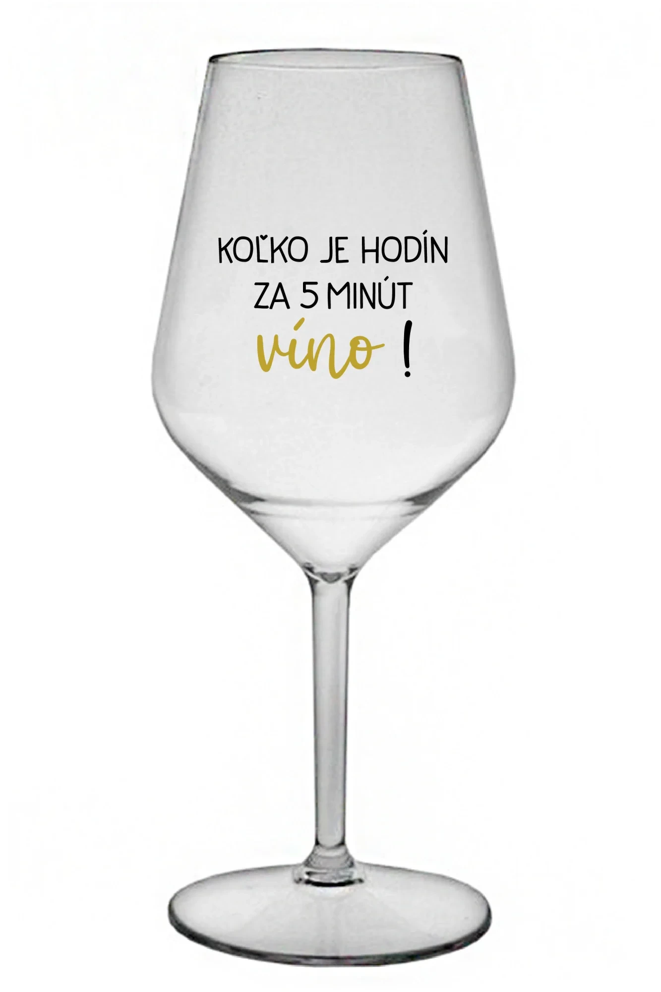 KOĽKO JE HODÍN? ZA 5 MINÚT VÍNO! - priehľadný nerozbitný pohár na víno 470 ml
