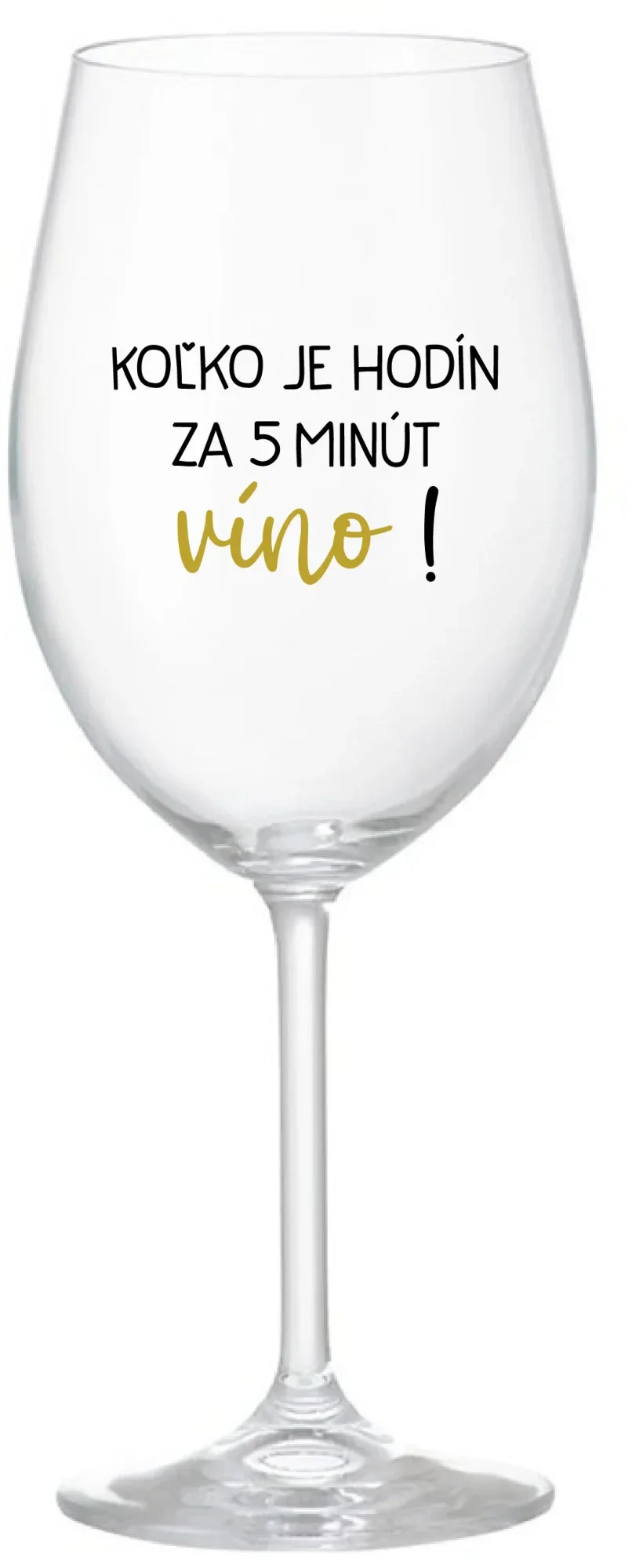 KOĽKO JE HODÍN? ZA 5 MINÚT VÍNO! - priehľadný pohár na víno 350 ml
