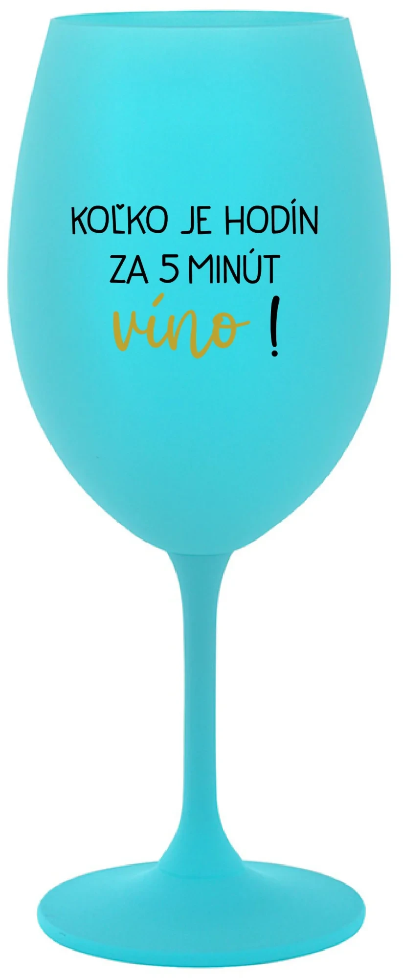 KOĽKO JE HODÍN? ZA 5 MINÚT VÍNO! - tyrkysový pohár na víno 350 ml