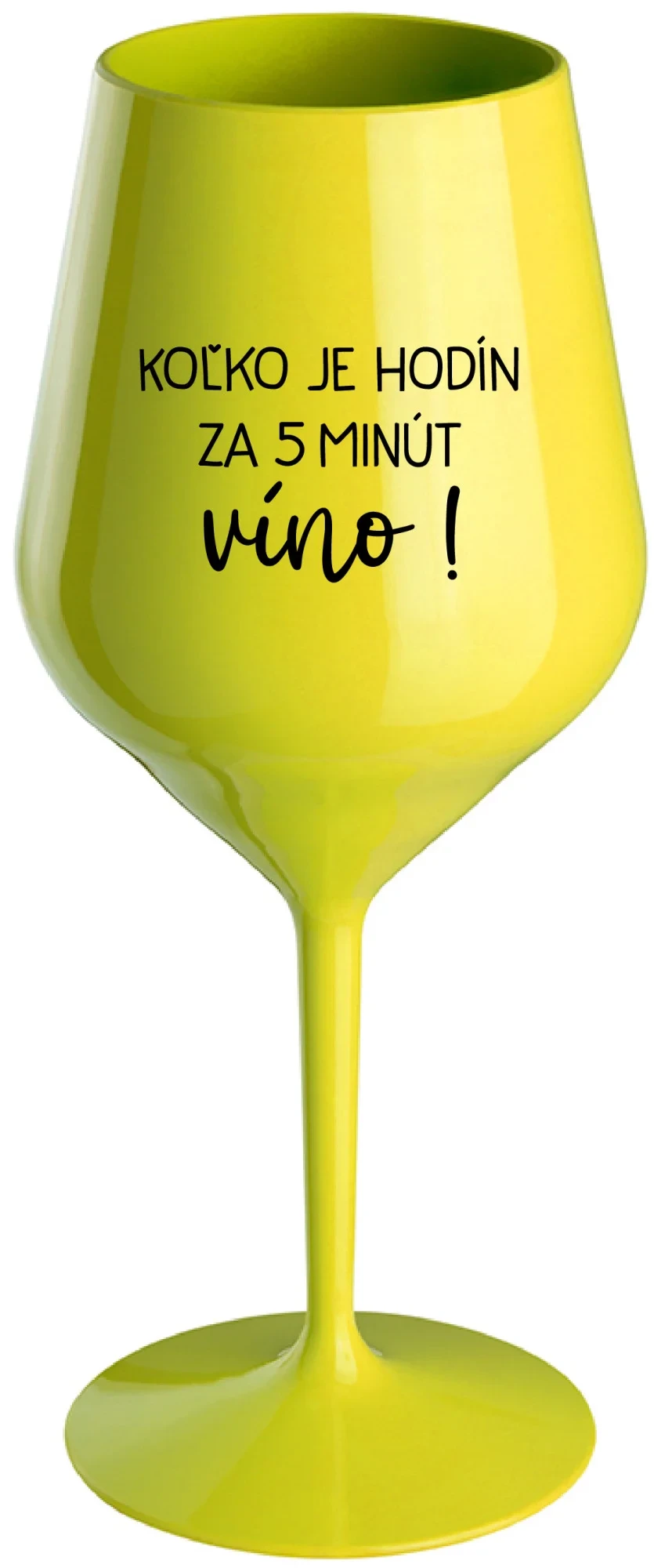 KOĽKO JE HODÍN? ZA 5 MINÚT VÍNO! - žltý nerozbitný pohár na víno 470 ml
