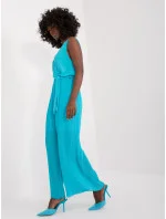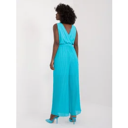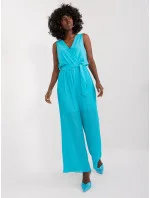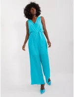 Námořnicky modrý overal s obálkovým výstřihem .