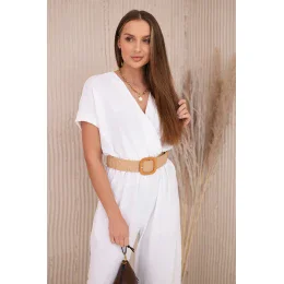 Kombinéza s ozdobným páskem v pase bílý
