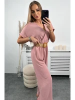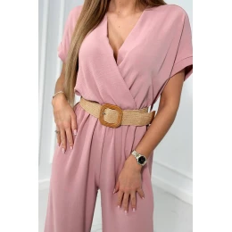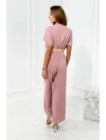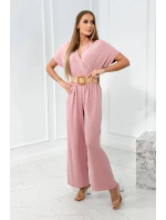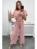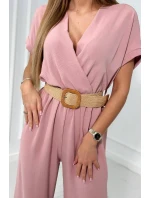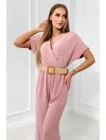 Kombinéza s ozdobným páskem v pase pudrově růžová