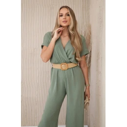 Kombinéza s ozdobným páskem v pase světlá khaki