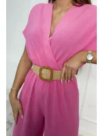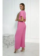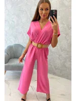 Kombinéza s ozdobným páskem v pase světle růžová