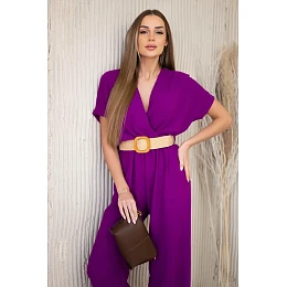 Kombinéza s ozdobným páskem v pase tmavě fialová