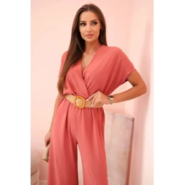 Kombinéza s ozdobným páskem v pase tmavě růžová