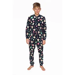 Chlapecký overal z kvalitní bavlny se slavnostním vzorem. Zapínání na zip. Rukávy a nohavice zakončené žebrovanými manžetami. Praktické kapsy na úrovni boků.