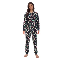 Dámský overal s dlouhými rukávy a kapsami. Rukávy a nohavice jsou zakončeny švem. Pyžamo je baleno v krabici.