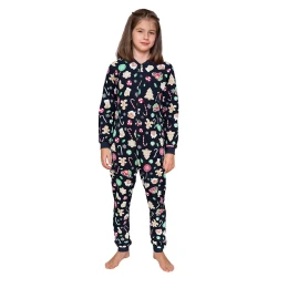 Dívčí pyžamo s dlouhými rukávy a kapsami. Rukávy a nohavice jsou zakončeny šňůrkou. Pyžamo je baleno v krabici.
