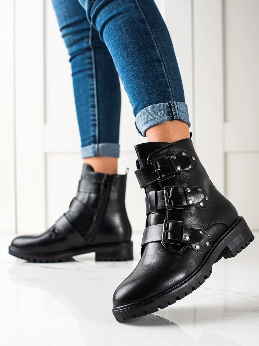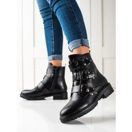 Komfortní dámské černé kotníčkové boty na plochém podpatku