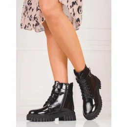 Komfortní dámské černé kotníčkové boty na plochém podpatku