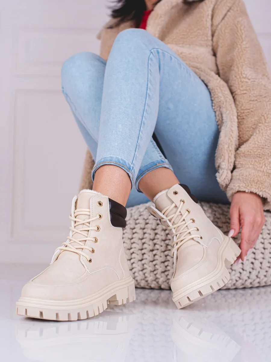 Komfortní hnědé kotníčkové boty dámské na plochém podpatku