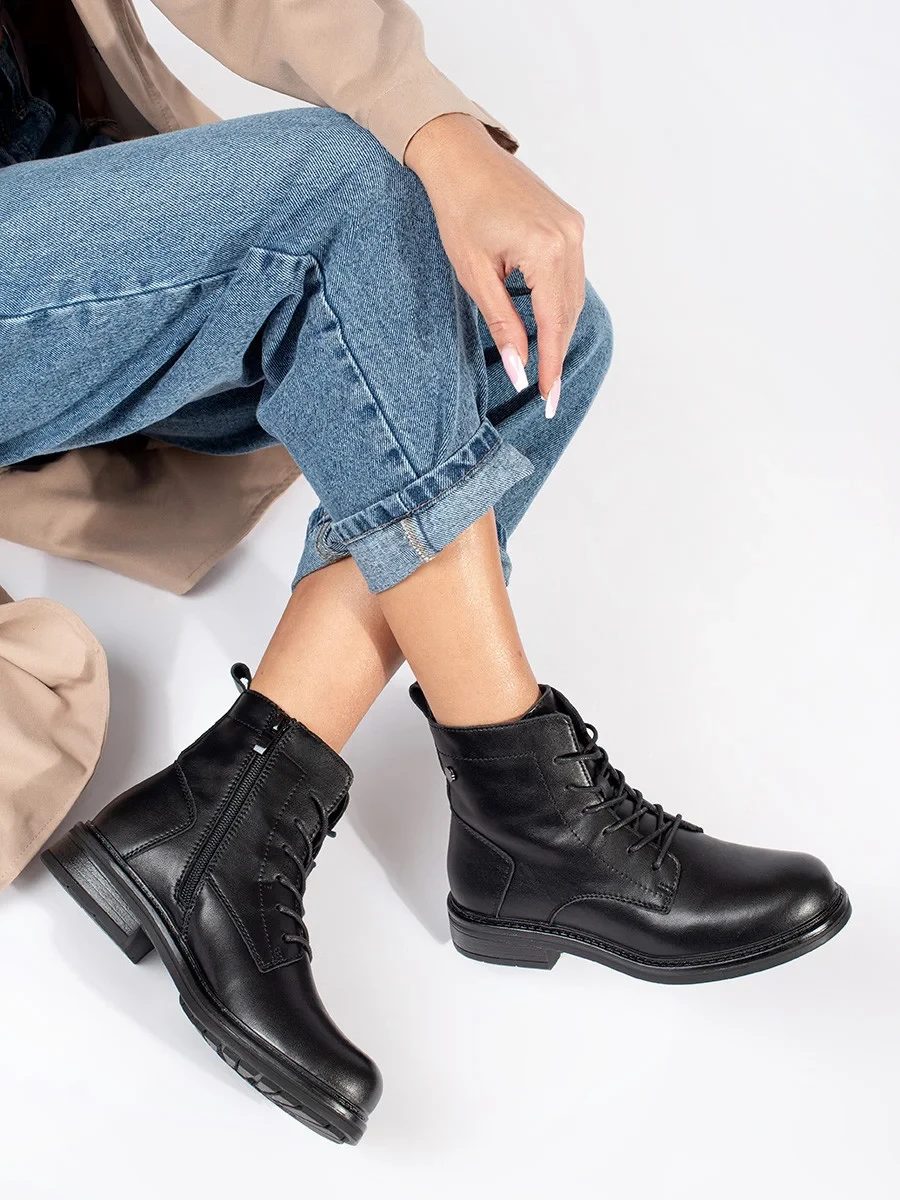 Komfortní kotníčkové boty dámské černé na širokém podpatku