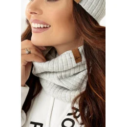 Dámská komínová šála. Model je poměrně dlouhý, což umožňuje jeho ohrnutí jako rolák.