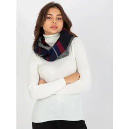Tmavě modrý a červený dámský komín s kostkovaným potiskem.