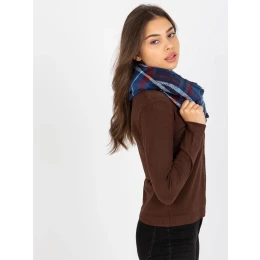 Námořnicky modrý a kaštanový komín s kostkovaným potiskem.