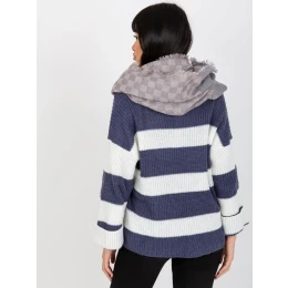 Dámský šedý a světle růžový kostkovaný zimní komín .