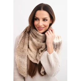 Dámský vlněný šátek měkký a teplý v barevných pruzích KN19 béžový