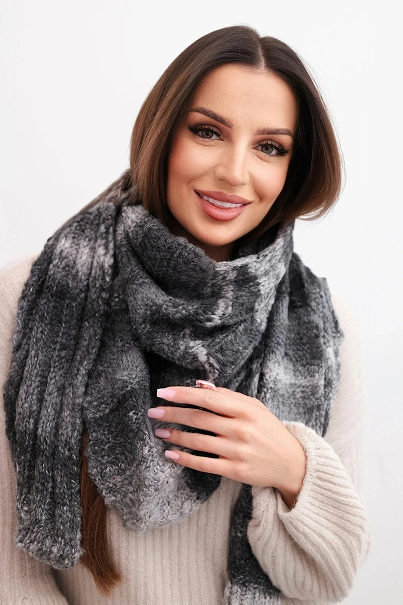Stylový dámský šátek vyrobený z příjemného na dotek vlákna s příměsí přírodní vlny. Díky své měkké struktuře a teplému materiálu se ideálně hodí na chladnější dny, obepíná krk a dodává kouzlo zimním stylizacím.