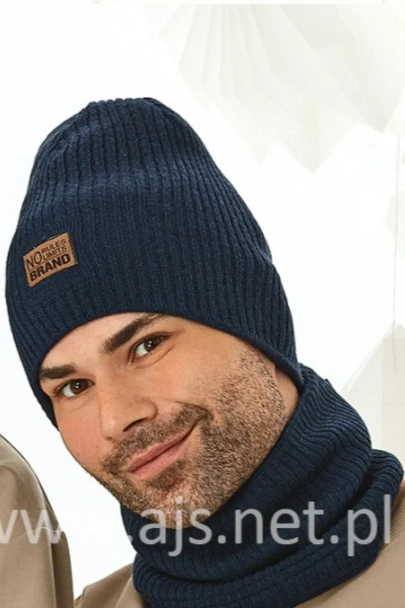 Pánská souprava: čepice + šusťák. Šusťák je poměrně dlouhý, což umožňuje jeho ohrnutí jako roláku. Čepice z dvojité, ale ne příliš silné vrstvy.
