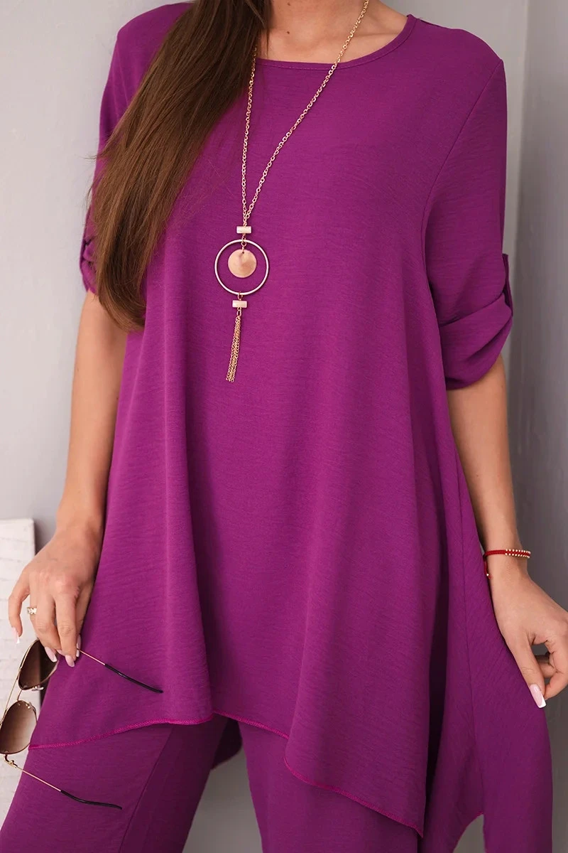 Komplet bluzka + spodnie s přívěskem lilkový