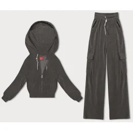 Dámský komplet v grafitové barvě - mikina a kalhoty typu cargo (AMG-322A)