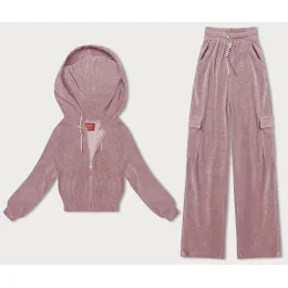 Růžový dámský komplet - mikina a kalhoty typu cargo (AMG-322A)