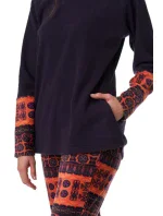 Dámský komplet/pyžamo, teplý, super měkký mikropolar (mikrofleece), ve přední části ozdobný slovanský vzor, dlouhé rukávy, dlouhé kalhoty, na bocích pohodlné kapsy.