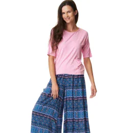 Souprava trička se spódnicnicospodni z měkkého viskózového úpletu. Tričko volného, šviháckého střihu s rukávy po lokty a výstřihem na loket ve světlé rós barvě. Kalhoty Culotte, velmi pohodlné a měkké, ideální na jaro a léto. Geometrický vzorór inspirovaný podhalskými motivy v modrých a rór barvách. Souprava trička se spódnicnico;kalhotami z měkkého viskózového úpletu. Tričko volného, šviháckého střihu s rukávy po lokty a výstřihem na loket ve světlé rós barvě. Kalhoty Culotte, velmi pohodlné a měkké, ideální na jaro a léto. Geometrický vzorór inspirovaný podhalskými motivy v modrých a rór barvách.