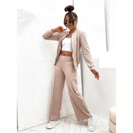Světle béžový dámský komplet - mikina bomberka a široké kalhoty (82105)