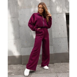 Dámský komplet ve vínové bordó barvě - mikina se stojáčkem a široké kalhoty (821109)